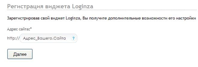 [ami_facebook] enabled = yes app_id = "xxxxxxxxxxxxxxxxxxxxxxxxxx" secret_id = "yyyyyyyyyyyyyyyyyyyyyyyyyy" LoginzaВажно! Для работы сервиса необходимо наличие в PHP расширения JSON. Требуются два параметра: app_id, secret_id. После регистрации на сервисе откройте ссылку http://loginza.ru/my-widgets и добавьте новый виджет указав имя своего сайта: