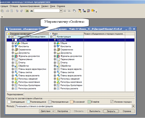 Рисунок 7. Окно сравнения и объединения конфигураций
