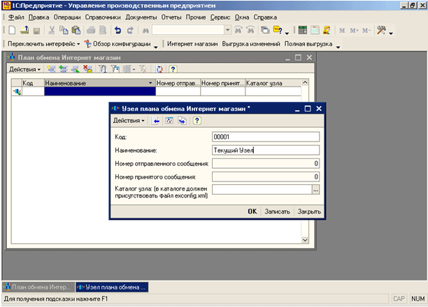 Далее нажатием копки «Ins» добавляем узел обмена, и аналогичным образом вводим данные узла: