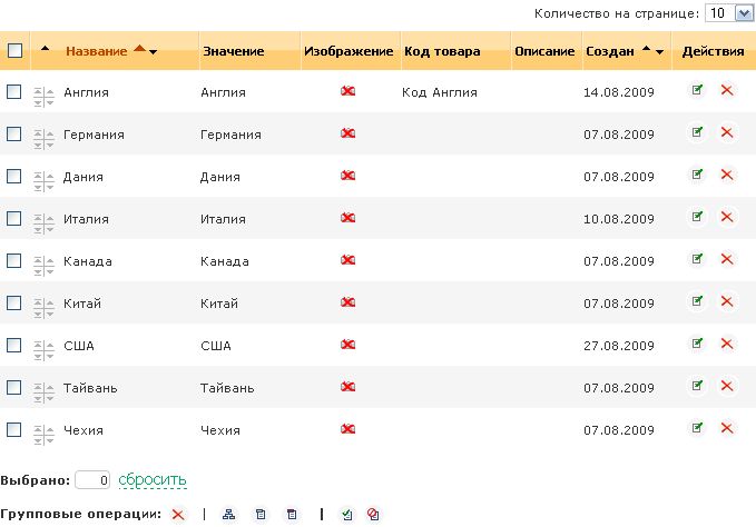 - Колонку групповой операции. Позволяет выбрать элементы для выполнения групповой операции.