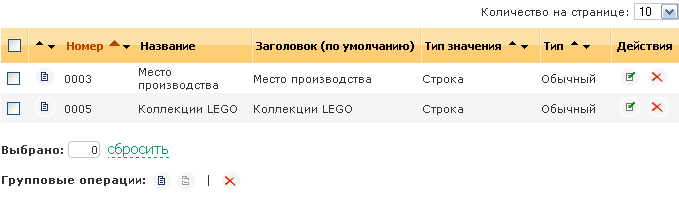 - Колонка групповой операции. Позволяет выбрать элементы для групповой операции.