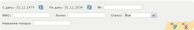 - Фильтр по статусу заказа.
