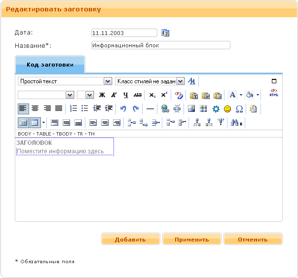 Форма редактированияФорма редактирования шаблона содержит следующие поля (см. рис. 27):