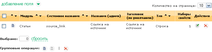 - Колонка групповой операции. Позволяет отметить элементы для выполнения групповой операции.