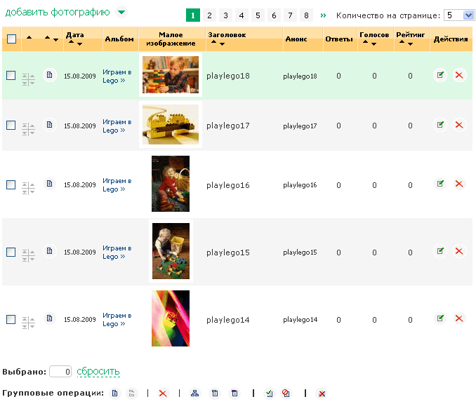 - Колонка групповой операции. Позволяет отметить элементы для выполнения групповых операций.