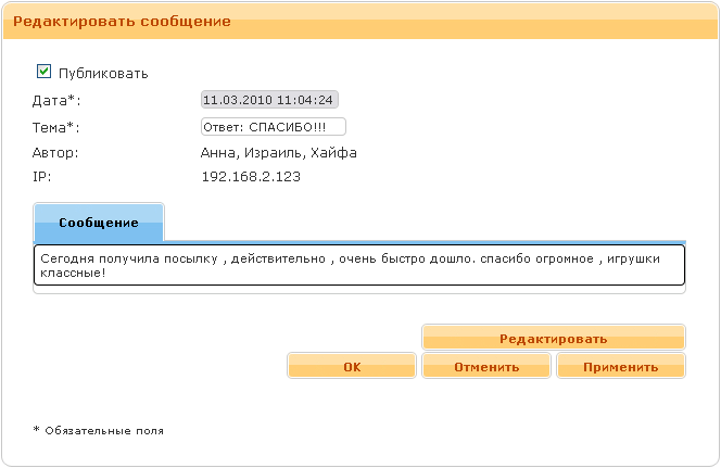 Рисунок 37 Форма редактированияФорма редактирования содержит следующие элементы: