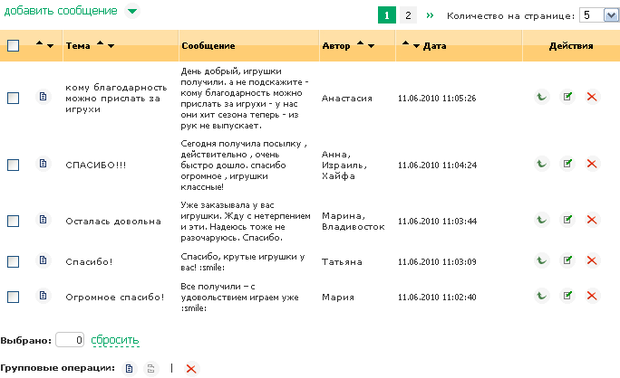 Фильтр модуля «Гостевая книга»: