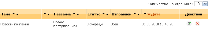 - Статус сообщения. Может принимать 2 значения: «в очереди» и «отправлено». Сообщение будет находится в очереди пока система не разошлет его автоматически.