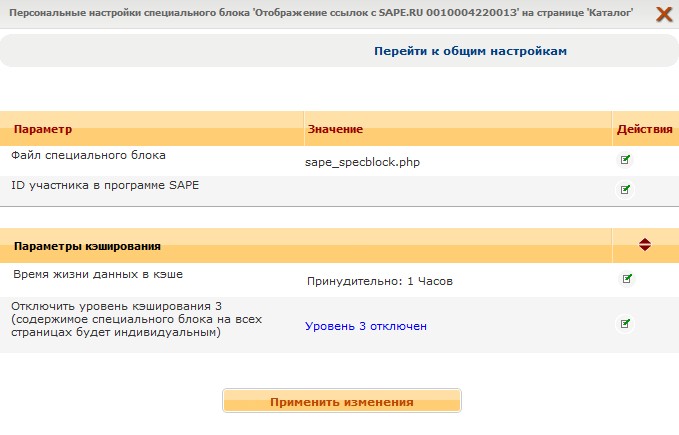 Приведенные на сайте пункты 1, 2, 3, 4 выполнять не нужно. Нас интересует только идентификационный номер площадки, который изображен выделенным текстом во втором пункте. В данном случае он такой: 6b289b0d190d7c6ff9c2e71cc15c7013 (для вашей площадки он будет отличаться от указанного в данной документации). После установки SAPE в модуле «Сервис : Настройка системы» нужно открыть параметры плагина «Отображение ссылок с SAPE.RU» и задать параметр «ID участника в программе SAPE». Дальнейшие настройки производятся на сайте Sape. Вам нужно будет указать адрес вашего сайта, а также адрес страницы, на которую установлен код. В качестве последнего, нужно ввести адрес страницы каталога Интернет магазина, так как именно на эту страницу мы разместили специальный блок плагина. Если в процессе проверки правильности установки кода Sape сообщил об ошибке, то вам нужно отключить кэширование на сайте (рисунок 6), и повторить попытку проверки. Отключать на долго кэширование крайне не рекомендуется, так как это значительно замедлит работу сайта.