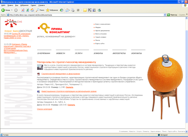 Самоучитель по интеграции дизайна и настройке Amiro.CMS на примере демонстрационной версии пакета Визитка »