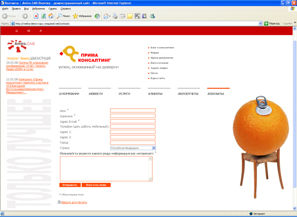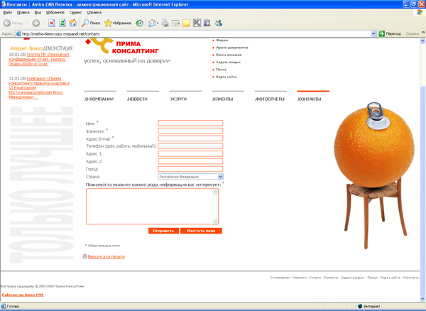 Самоучитель по интеграции дизайна и настройке Amiro.CMS на примере демонстрационной версии пакета Визитка »