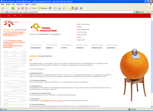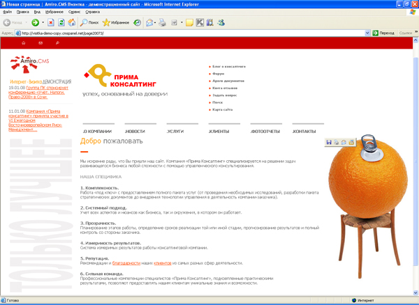 Самоучитель по интеграции дизайна и настройке Amiro.CMS на примере демонстрационной версии пакета Визитка »
